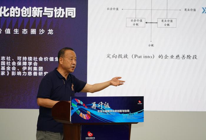 西北大学公共管理学院教授席恒在演讲中表示,数字公益的终极目标是形成“公德”式社会价值共创,通过技术、商业与公益的深度耦合实现可持续变革。企业参与数字公益的演进路径会经历从点状资源投放、社会责任融入、商业价值与社会价值在生产和分配环节的深度双向融合三个阶段,最终可构建开源模型(行业生态)和通用模型(用户生态)相结合。