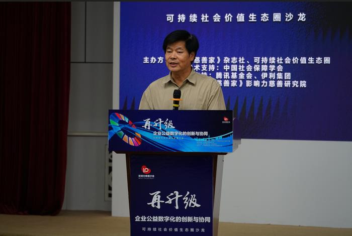 第十四届全国人大常委会委员、中国社会保障学会会长郑功成发表了《从一个新概念到一种新生态》的主题演讲。他表示,中国的企业提出“可持续社会价值创新”的新概念,已经超越了商业的视角,增加了社会与公共利益的视角,不是满足于企业收益与责任的平衡,而且主动追求创造社会价值,这个概念是具有中国特色的话语。由新概念带来新理念,最后带来的是新的社会生态。从企业和社会、企业和慈善公益的良性互动开始,正在形成一个跨行业、跨界别、跨群体的社会共享新生态,进而助力整个国家经济社会协同发展。